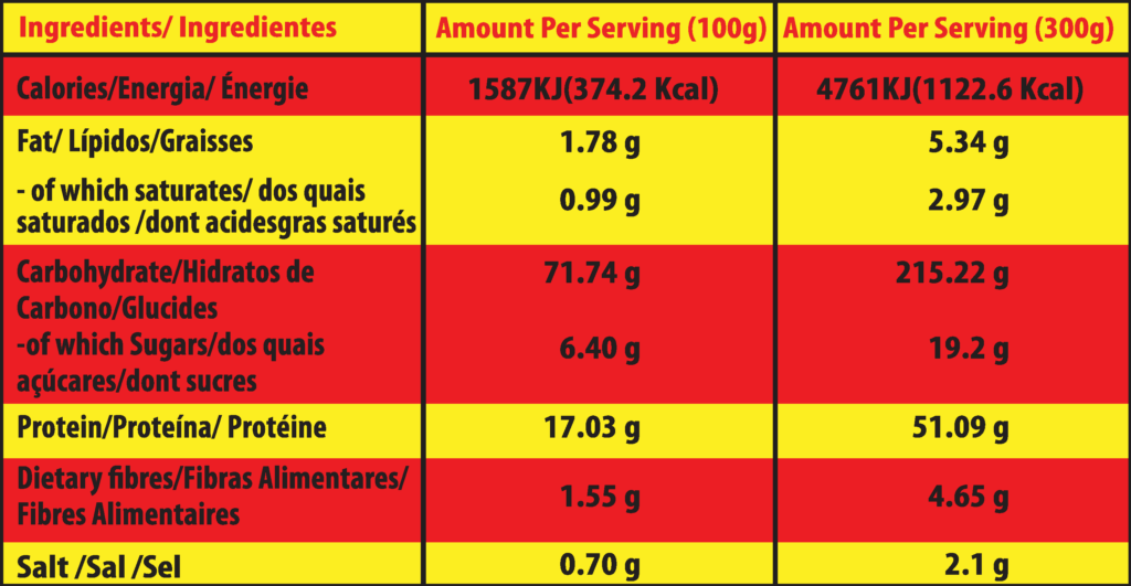 📊 القيمة الغذائية لكل حصّة (100 غم – 2 مغراف):