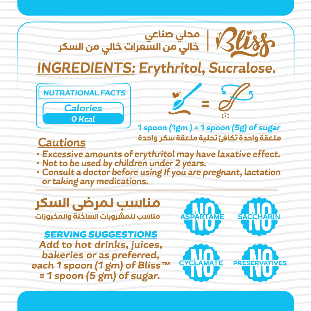استخدم 1 جم (ملعقة متوسطة) من Bliss بدل 5 جم من السكر الطبيعي