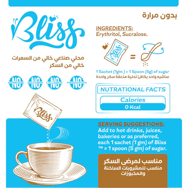 استخدم 1كيس (ملعقة متوسطة) من Bliss بدل 5 جم من السكر الطبيعي