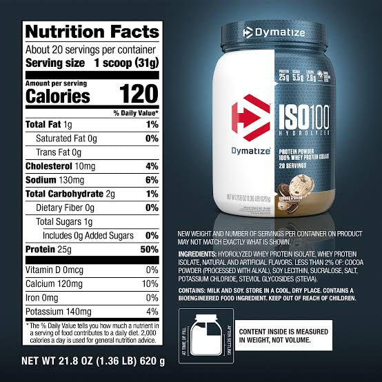 صنع ديماتيز ايزو 100 بروتين باستخدام مصادر البروتين الهيدرولايزد (يحتوي على أحماض أمينية تزيد من سرعة الهضم والإمتصاص). نظرة واحدة على لائحة الحقائق ستخبرك بالمنافع العديدة التي يقدمها ديماتيز آيزو 100 بروتين لك.